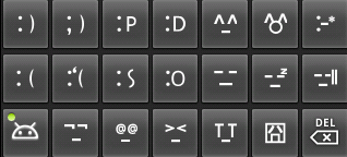 设置文本的类型,用于帮助输入法显示合适的键盘类型。有如下值设置:none、text、textCapCharacters字母大小、textCapWords单词首字母大小、textCapSentences仅第一个字母大小、textAutoCorrect、textAutoComplete自动完成、textMultiLine多行输入、textImeMultiLine输入法多行(如果支持)、textNoSuggestions不提示、textEmailAddress电子邮件地址、textEmailSubject邮件主题、textShortMessage短信息(会多一个表情按钮出来,点开如下图: )、textLongMessage长讯息?、textPersonName人名、textPostalAddress地址、textPassword密码、textVisiblePassword可见密码、textWebEditText作为网页表单的文本、textFilte文本筛选过滤、textPhonetic拼音输入、numberSigned有符号数字格式、numberDecimal可带小数点的浮点格式、phone电话号码、datetime时间日期、date日期、time时间。部分参考这里。 |